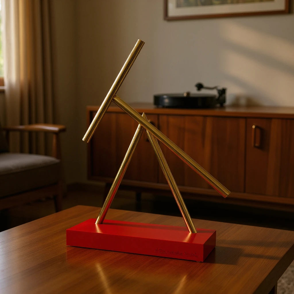 BASIC EDITION | SCULPTURE CINÉTIQUE ROUGE & OR | ILLUSION DE MOUVEMENT PERPÉTUEL | DOUBLE ÉLÉMENT DE SUSPENSION DESIGN EN ALUMINIUM | OBJET DÉCORATIF FASCINANT POUR LES FANS DE TECHNIQUE & LES AMATEURS D'INTÉRIEUR