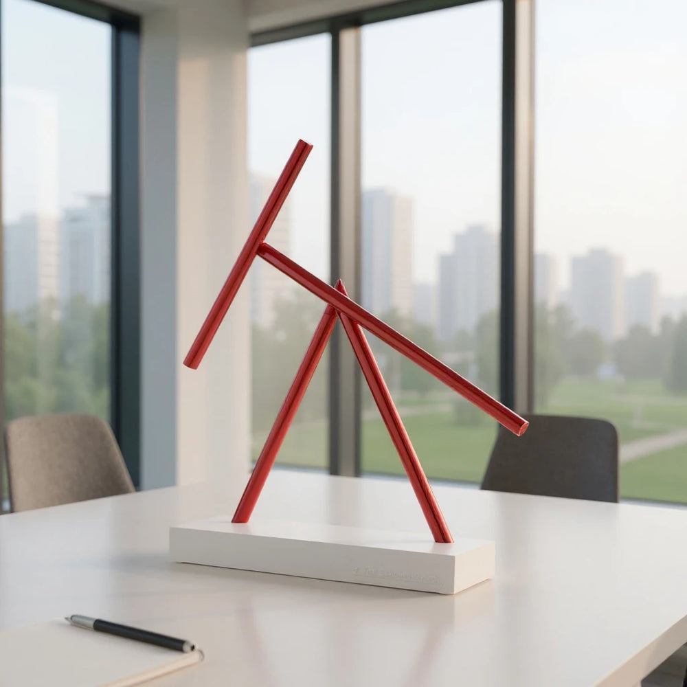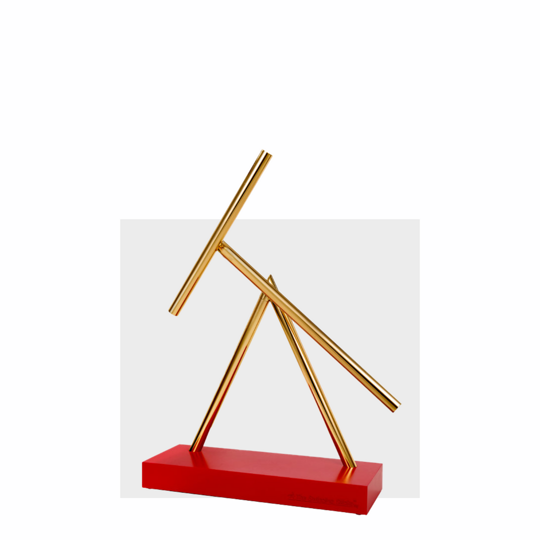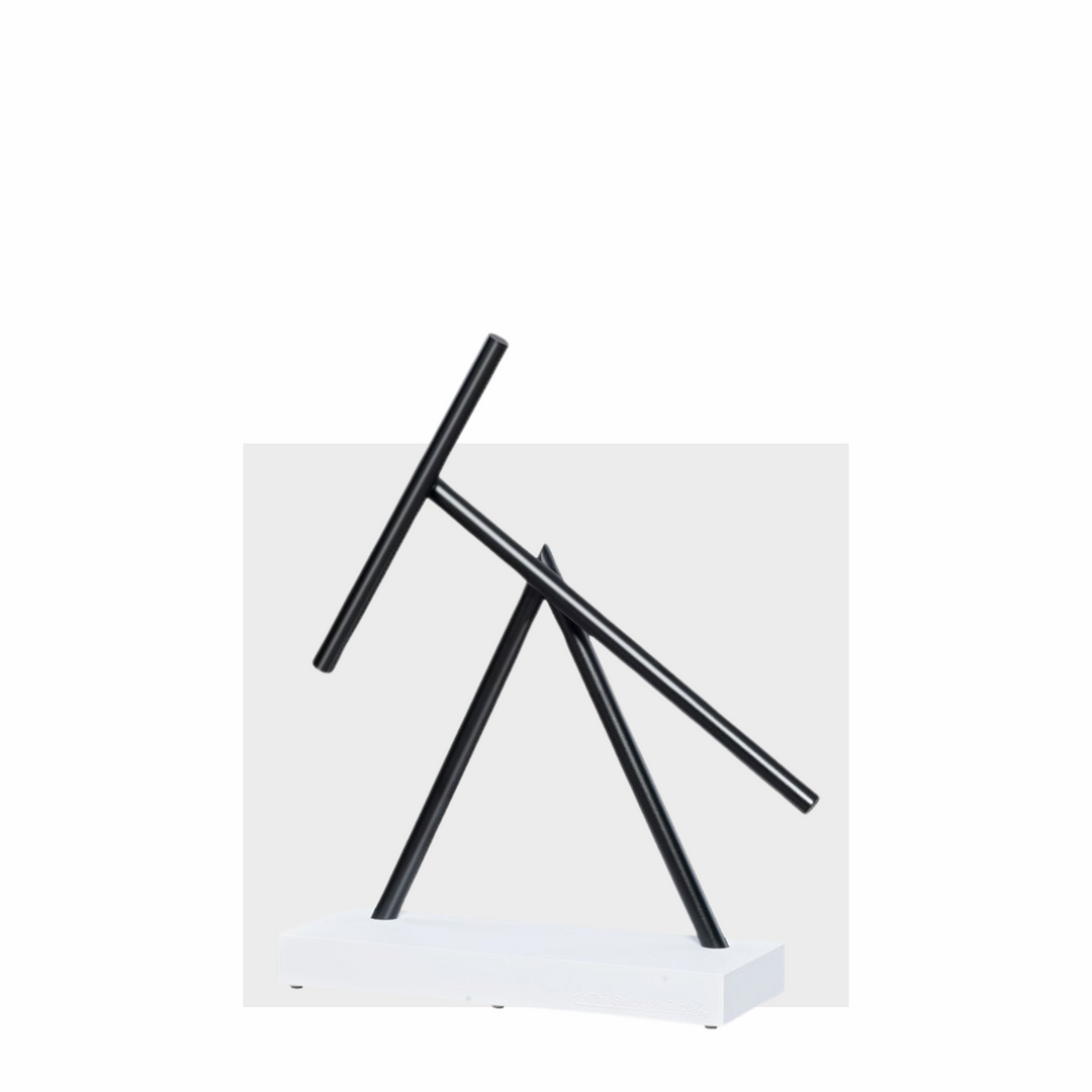 La base è in robusta plastica ABS, prodotta industrialmente per garantire la massima stabilità. Ma l'anima è nel lavoro manuale: ogni assemblaggio e regolazione è fatto a mano per garantire un equilibrio e un movimento perfetti. In combinazione con le colorate aste in alluminio anodizzato nei colori rosso, blu o oro, il risultato è un design moderno ed elegante.