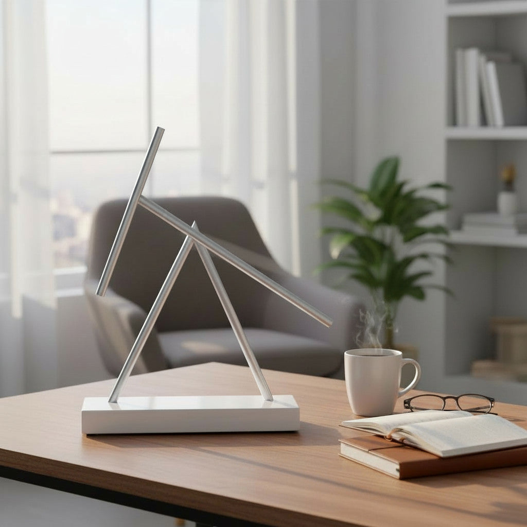 Minimalismo in bianco pianoforte - La superficie lucida in lacca di pianoforte, combinata con il linguaggio del design minimalista, rende questa scultura cinetica un elegante oggetto di rappresentanza, ideale per interni moderni, ambienti di lavoro creativi, sale studio eleganti e spazi abitativi puristi.
