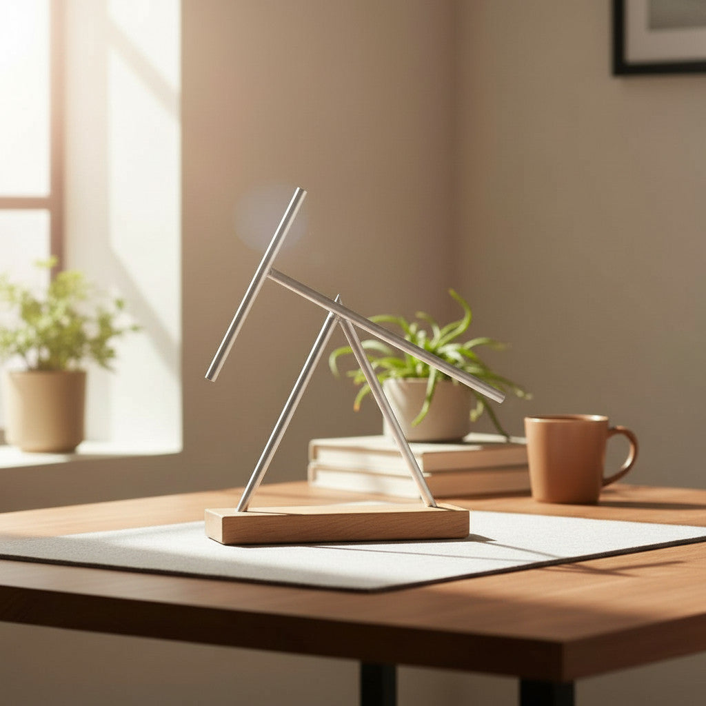 Design dalla natura - La base in rovere bianco massiccio armonizza il calore e l'autenticità di un materiale naturale autentico con il linguaggio di design chiaro e minimalista della scultura cinetica. I bastoncini lavorati con precisione completano l'aspetto armonioso dell'insieme e fanno di questo pezzo forte un'elegante combinazione di artigianato e design senza tempo 🌿 - ideale per gli interni moderni, gli spazi di lavoro creativi e gli spazi abitativi più puri.